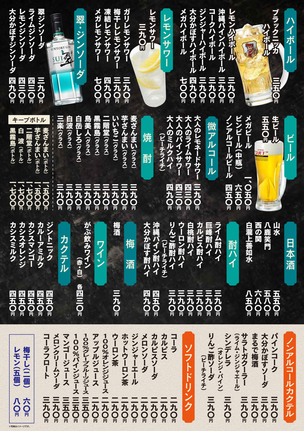 大分地魚と炭火やきとり 炭火焼 鳥ざんまいのお品書きは、リーズナブルに美味しくお楽しみいただけるものを揃えています。
